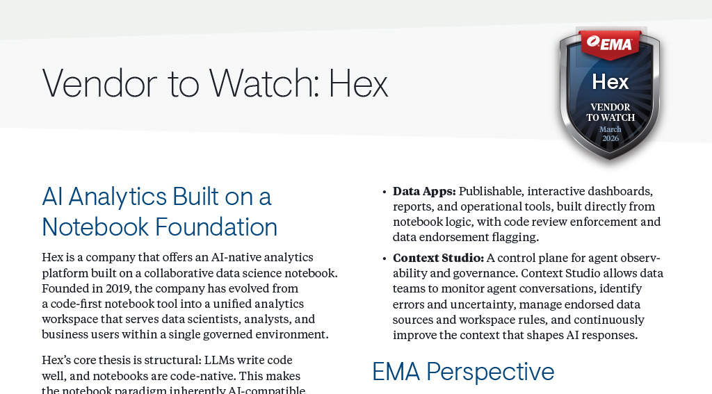 EMA "Vendors to Watch" are companies that deliver unique customer value by solving problems that pre...